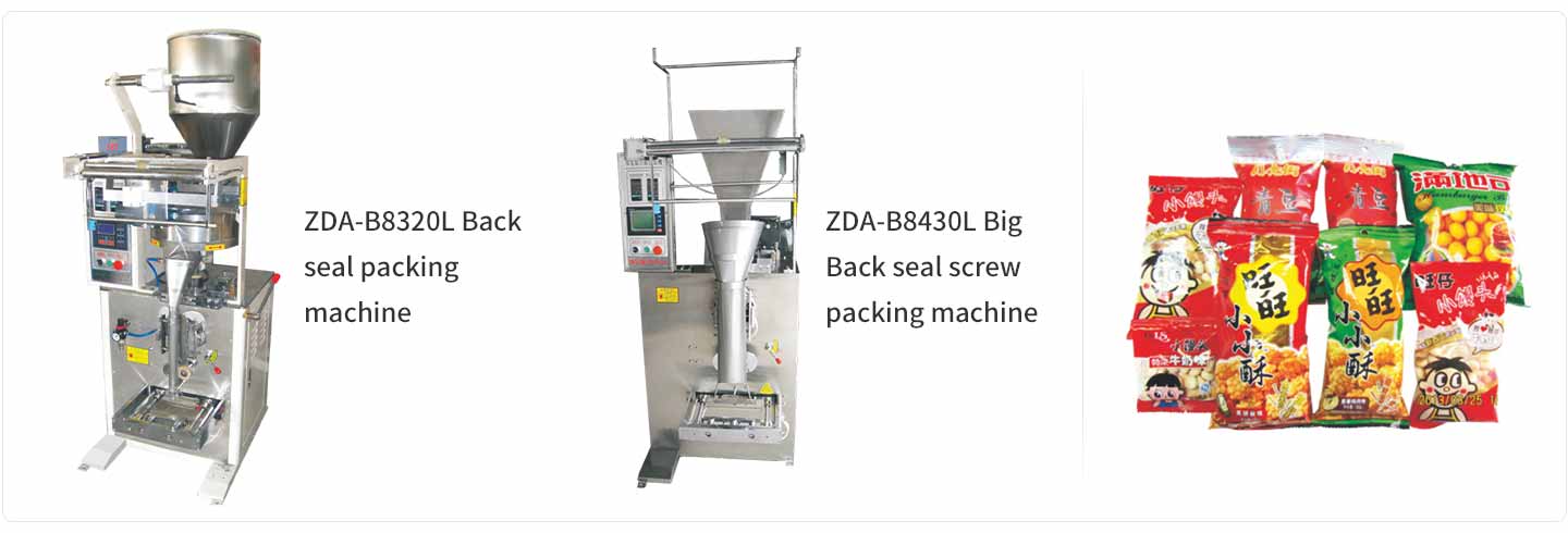 هذه الآلة قابلة للتطبيق على تغليف الأطعمة المنفوخة ، تكسير الجمبري ، الفول السوداني ، دقيق الذرة ، الغلوتامات أحادية الصوديوم ، بذور البطيخ ، السكر الأبيض ، الملح والمسحوق والحبيبات.