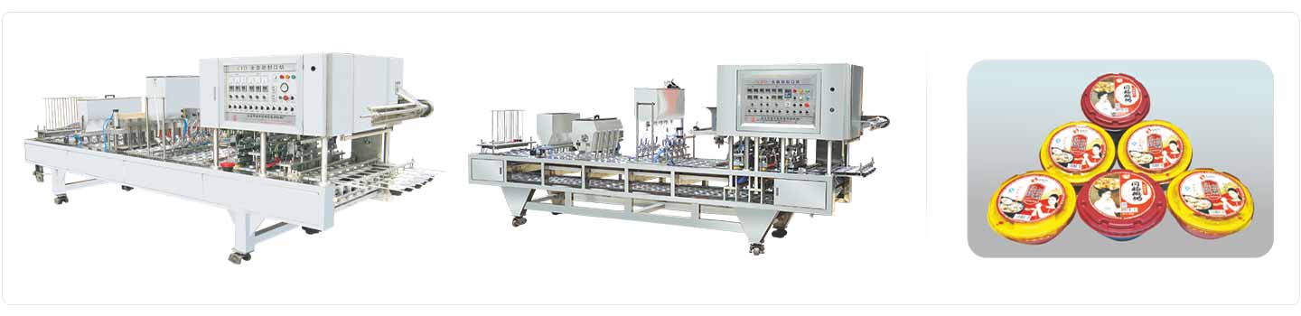 ◪ This machine is suitable for the fling and sealing the eight ingredient porridge product. The working flow is: feeding cup--feeding the rice grains, Chinese-date and lotus seed---twice liquid filling--twice sealing--cutting--propping. All the actions above is full automatically.