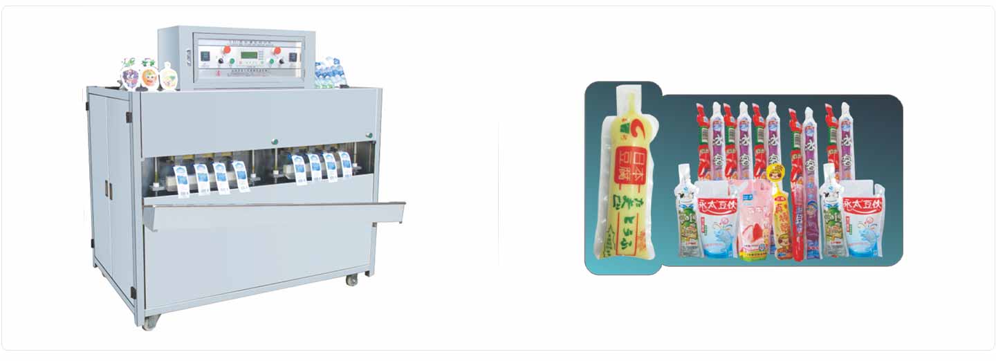 This machine is suitable for filling and sealing different drinks, such as juice, sucking jelly, japan tofu, mineral water and jelly juice etc. The machine is suitable for different shape and volume bags. We can design different needle, filling and sealing structure, according to customers’ demand.