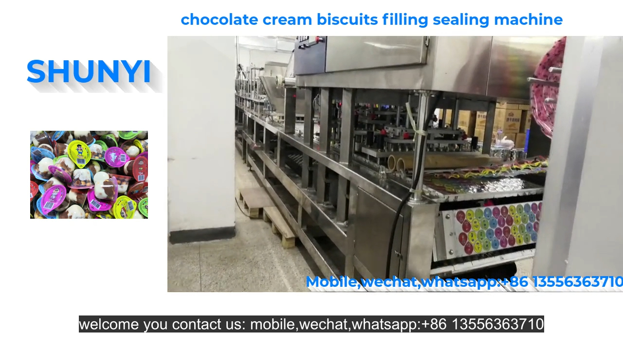 Auto cup falling-auto cream filling----auto biscuits filling--auto chocolate filling--auto date printer--auto twice hot sealing --auto cutting -auto discharge